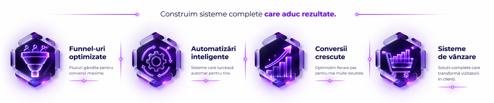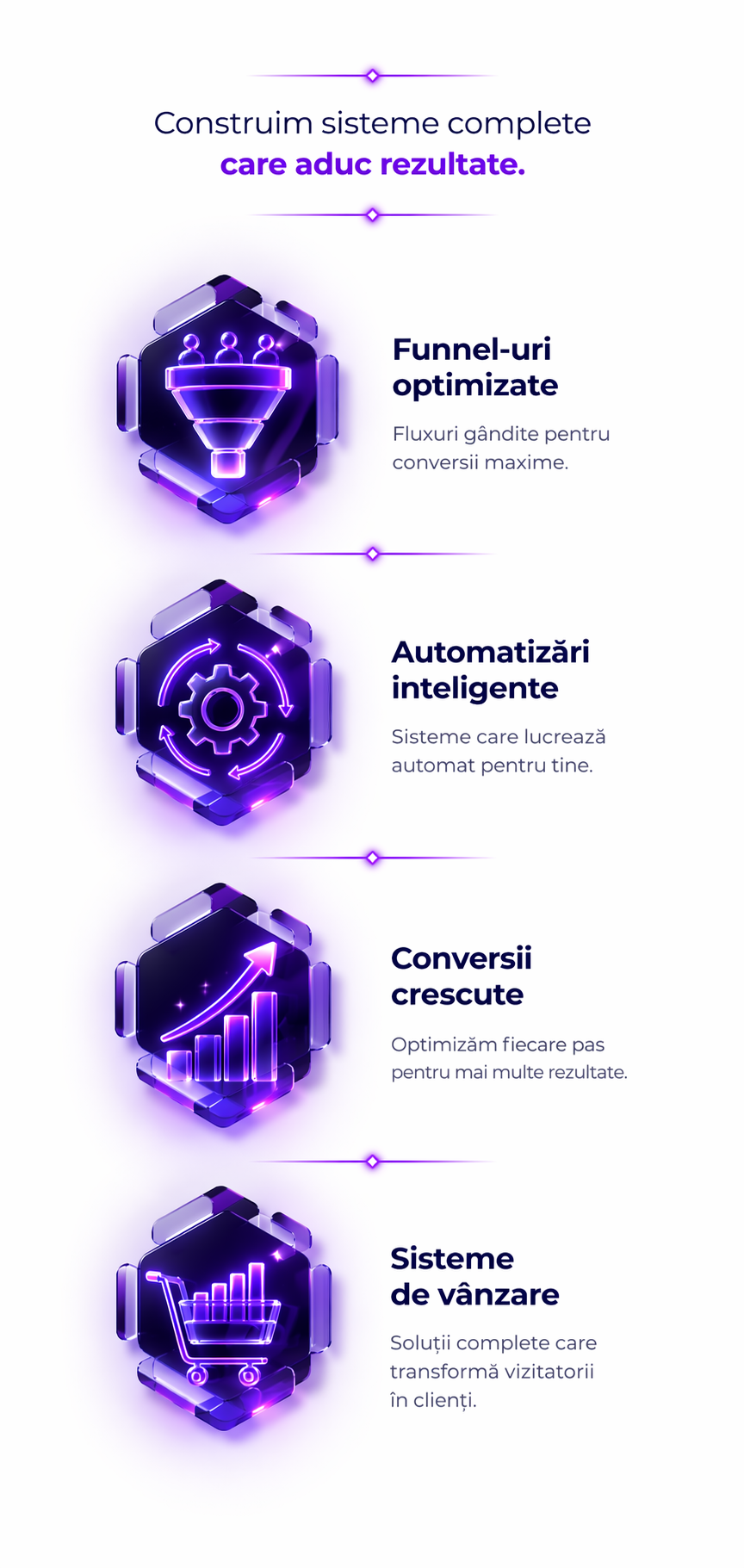 Realizăm site-uri de prezentare, landing page-uri și funnel-uri optimizate pentru conversii.